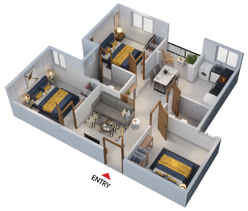 Saleable Area: 1075 Sq Ft